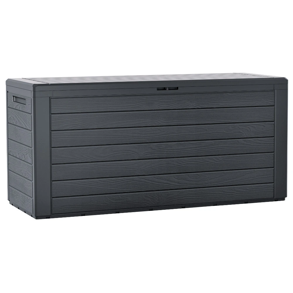 - 1 x Prosperplast Auflagenbox Woodebox 280 Liter aus Kunststoff, anthrazit mit Holzoptik