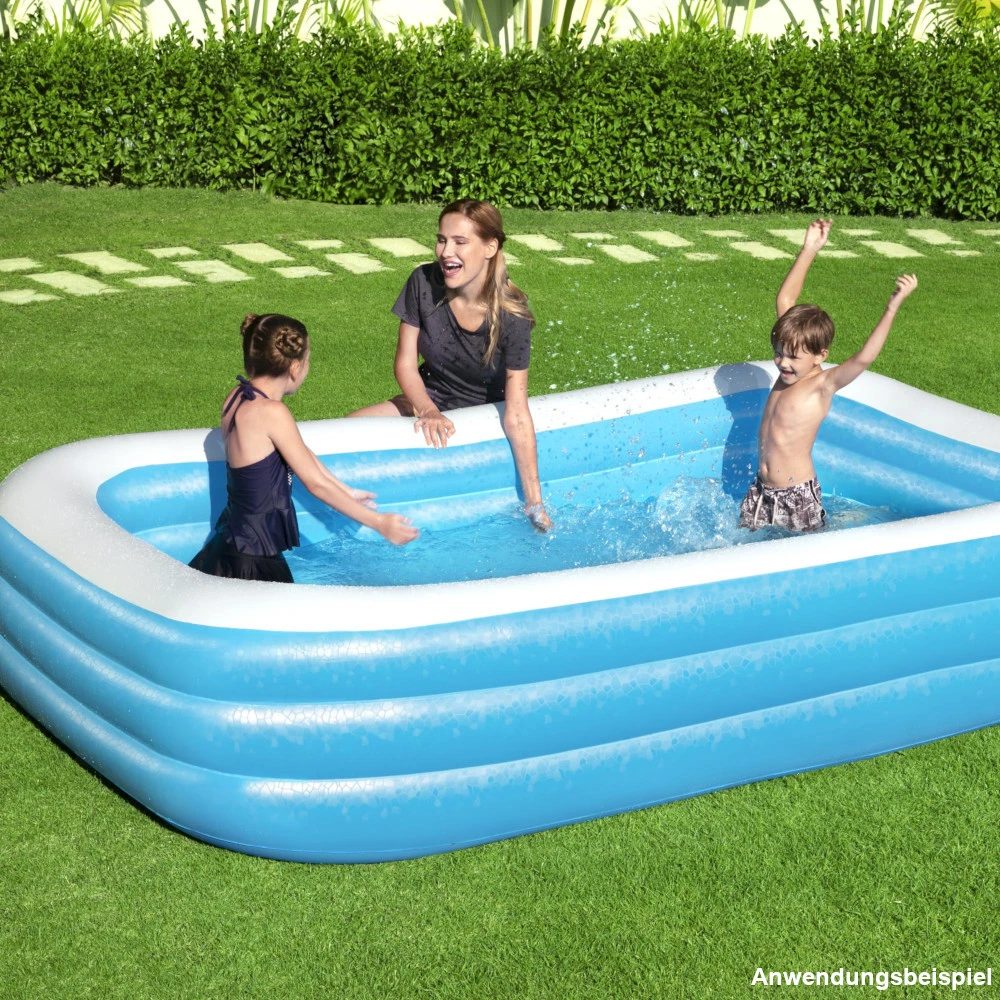 Mit dem qualitätsgeprüften, quadratischen Family-Pool für Kinder (und Erwachsene) ist für ausreichend Bewegung und Badespaß im Freien gesorgt. Das 305 x 183 x 56 cm große Becken ist aus strapazierfähigem und geprüftem Vinyl hergestellt. Durch die extra breite Seitenwand ist dieser Pool ideal für junge Familien zum Planschen und Spielen in der Sonne. Zum Abbau und zur späteren Lagerung ist er dank des praktischen Ablassventils ganz einfach zu entleeren. Noch nie hat das Herumplanschen in der Sommerhitze so viel Spaß gemacht wie mit dem Family Pool von Bestway!