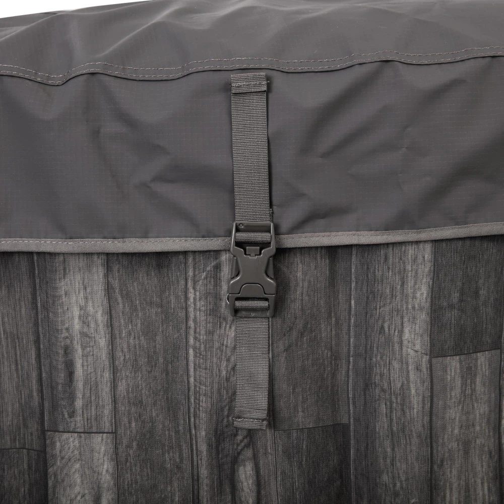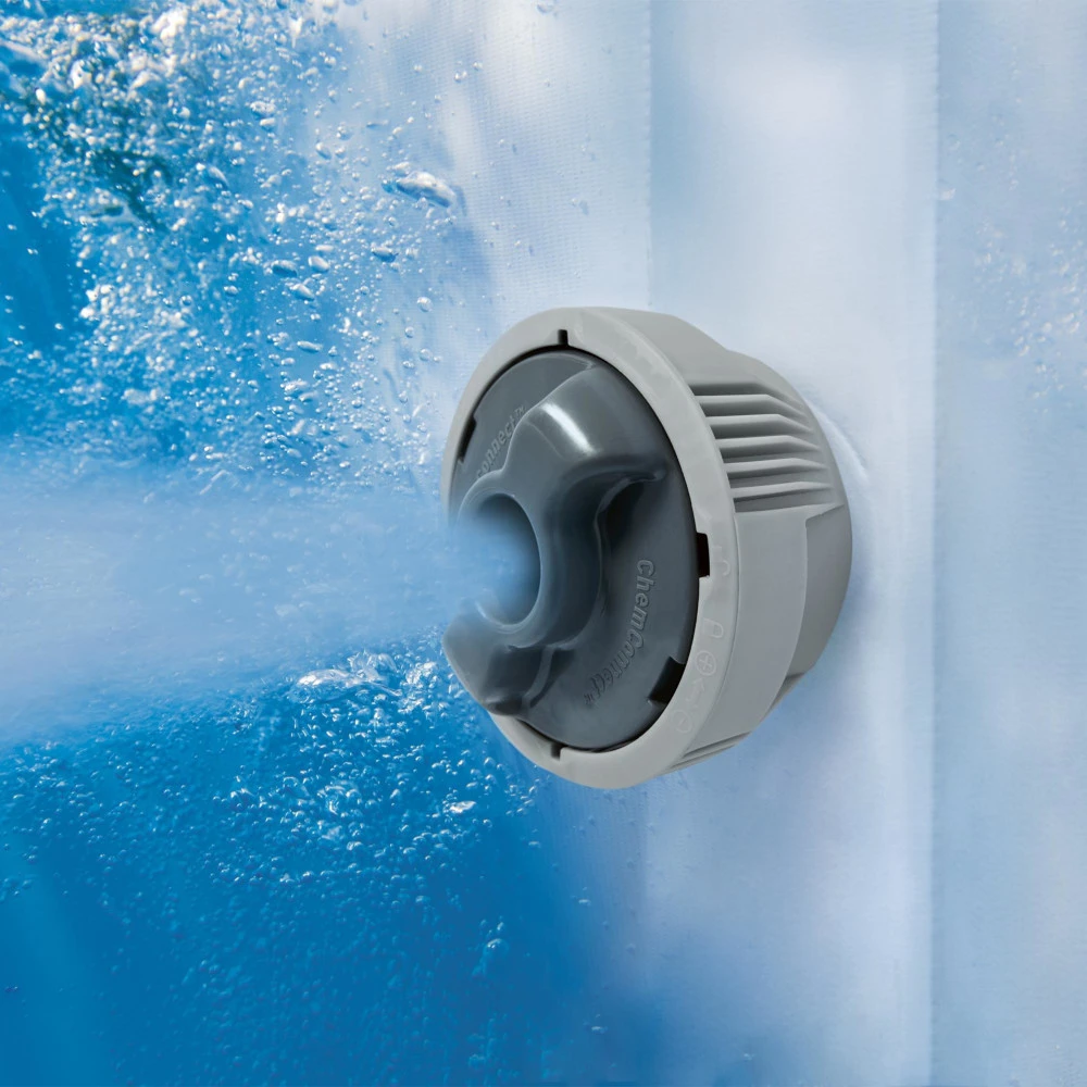 Mit dem runden LAY-Z-SPA Bahamas AirJet geben wir dir den Schlüssel zu deinem eigenen Spa, das bis zu 4 Personen genießen können. Lass dir von den 120 Luftdüsen im 40°C warmen Wasser eine traumhafte, sprudelnde Massage verpassen. Mit Hilfe des Frostwächters braucht der Whirlpool keine Winterpause mehr. Sobald die Wassertemperatur auf 6°C sinkt, wird die Heizung eingeschaltet und bei 10°C wieder abgeschaltet. Ähnlich einfach ist es, den Whirlpool einzustellen, was über die Multifunktionspumpe erfolgt. Über das ausklappbare Soft-Touch-Display kannst du die Kommandozentrale bedienen, um z. B. die Filter- & Heizfunktion zu regeln. Für mehr Sicherheit sorgen die Tastensperre und die kindersicheren Clipverschlüsse der Thermoabdeckung. So machen Kinder garantiert keine Karriere als Rettungsschwimmer. Die Dosierung & Verteilung der Poolchemikalien wird mit dem ChemConnect geregelt. Zudem bietet die Lamellenstruktur der Filterkartusche genügend Oberfläche für eine effektive Filtration des Wassers. Ein weiteres Plus ist das reißfeste & formbeständige DuraPlus-Material. Es sorgt für Langlebigkeit. Im Inneren der Whirlwanne bietet eine Y-Träger-Luftbalkenkonstruktion besten Halt. Wenn man den Whirlpool nicht benutzt, schützt die Abdeckung vor Temperaturverlust. Keine Lust mehr auf Wellness? Über das Ablaufrohr mit Gartenschlauchadapter kannst du das Wasser einfach ablassen. Der Entlüftungsadapter erleichtert dir anschließend die Demontage, ohne dass dir die Puste ausgeht. Es kommt noch besser! Dieses LAY-Z-SPA ist vom TÜV Rheinland GS-zertifiziert – denn Sicherheit hat oberste Priorität. Zusätzlich zum Prüfsiegel gibt es eine zweijährige Herstellergarantie des Kundendienstes. Solltest du einmal ein Ersatzteil benötigen, kannst du es einfach nachbestellen. Bist du überzeugt? Dann rauf auf den Whirlpool, fertig, los!