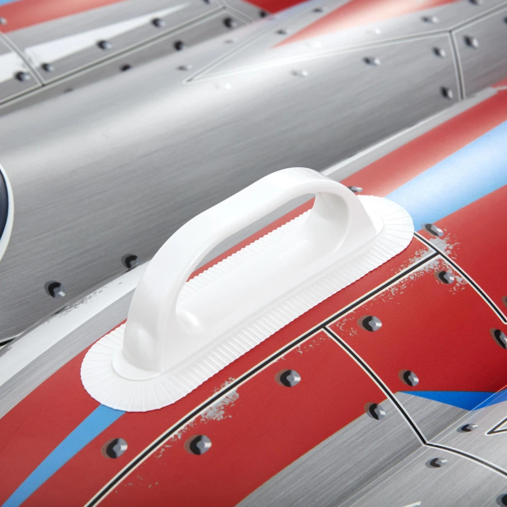 Die Schwimmfigur Galaxy Rider von Bestway ist perfekt für kleine Astronauten. Die erstaunlich realistischen Motive wecken die Fantasie der Kindern und sorgen für besonderen Spaß beim Herumschwimmen im Pool. Beim Planschen und Spielen erkunden sie ferne Galaxien und lassen ihrer Vorstellungskraft freien Lauf. Der besonders robuste Griff gibt den kleinen Piloten einen sicheren Halt. Im Handumdrehen aufgeblasen, ist die Schwimmfigur Galaxy Rider im Nullkommanichts einsatzbereit!