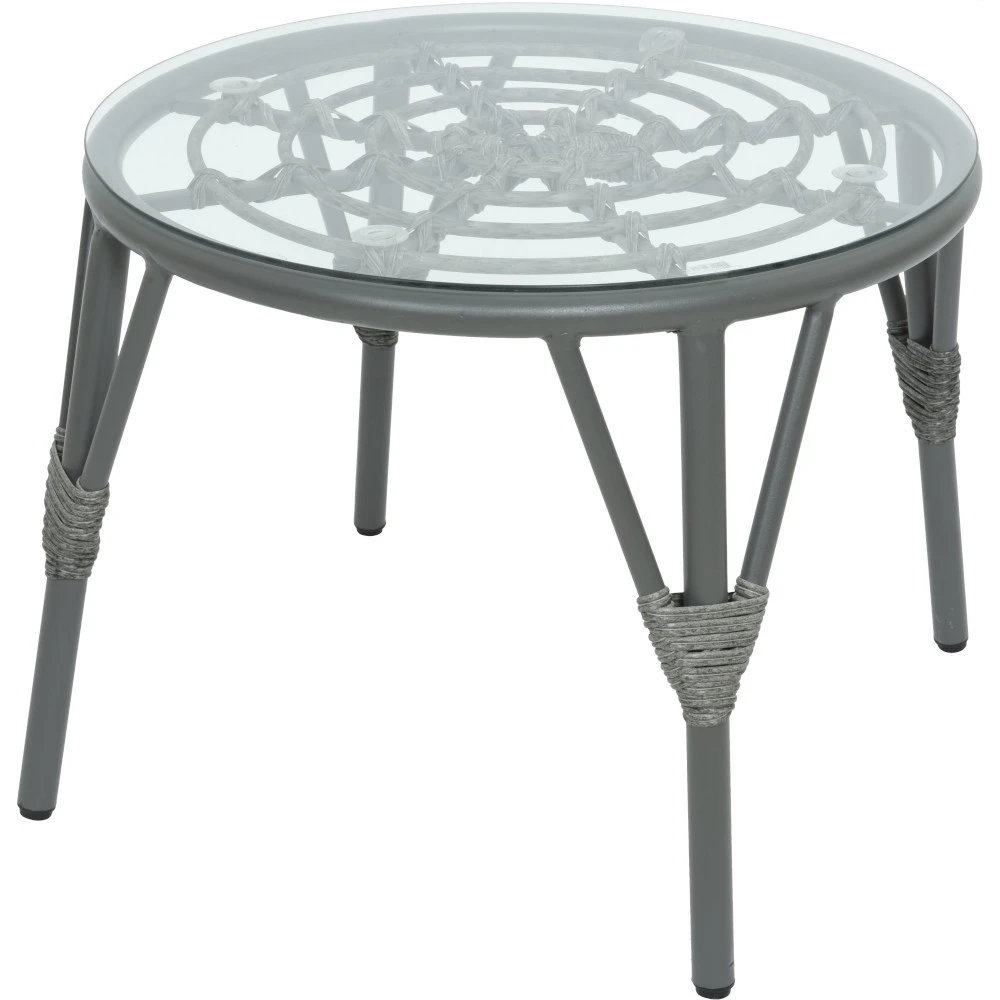 - Couchtisch mit Geflechtgestell und Platte aus gehärtetem Glas