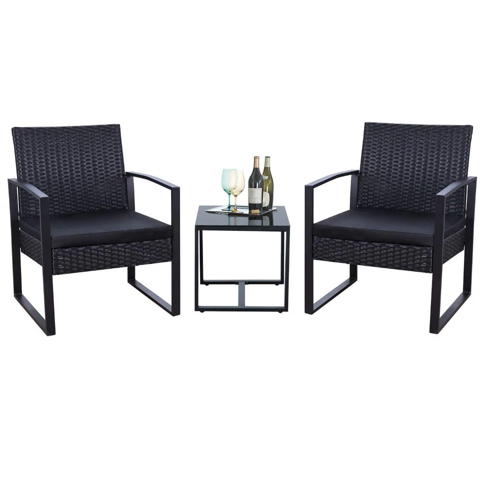 - komfortable Gartenset aus schwarzem pulverbeschichteten Metall