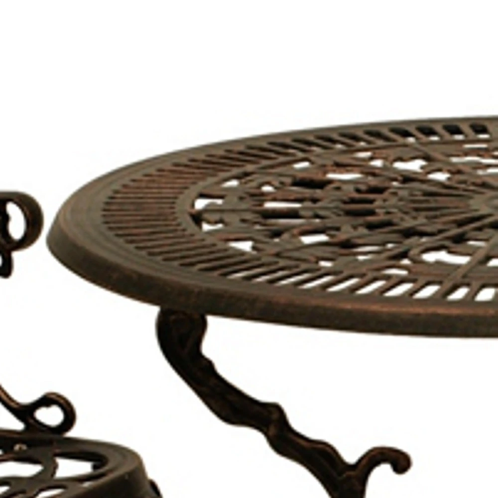 5-teilige Gartensitzgruppe in Jugendstil-Optik. Das Metall-Gartenmöbel-Set ist aus einem wetterfesten Aluminiumguss in Bronze-antik gefertigt. Durch die offene Struktur und Beschichtung sind die Metall-Gartenmöbel sehr pflegeleicht und ein wahrer Blickfang.