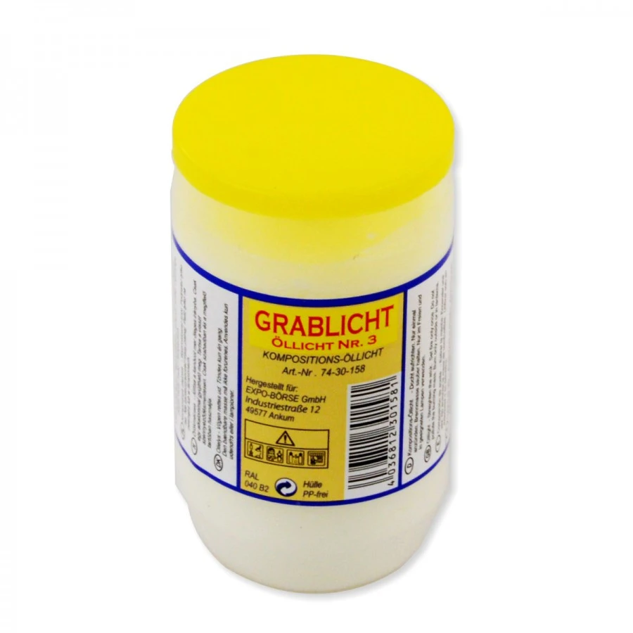 Die Öllicht-Grabkerze mit 30 % Ölgehalt bringt dein Grabschmuck, Sträucher oder andere Dekorationen sehr gut zur Geltung. Darüber hinaus verfügt die Grabkerze über eine Brenndauer von bis zu 30 Stunden.