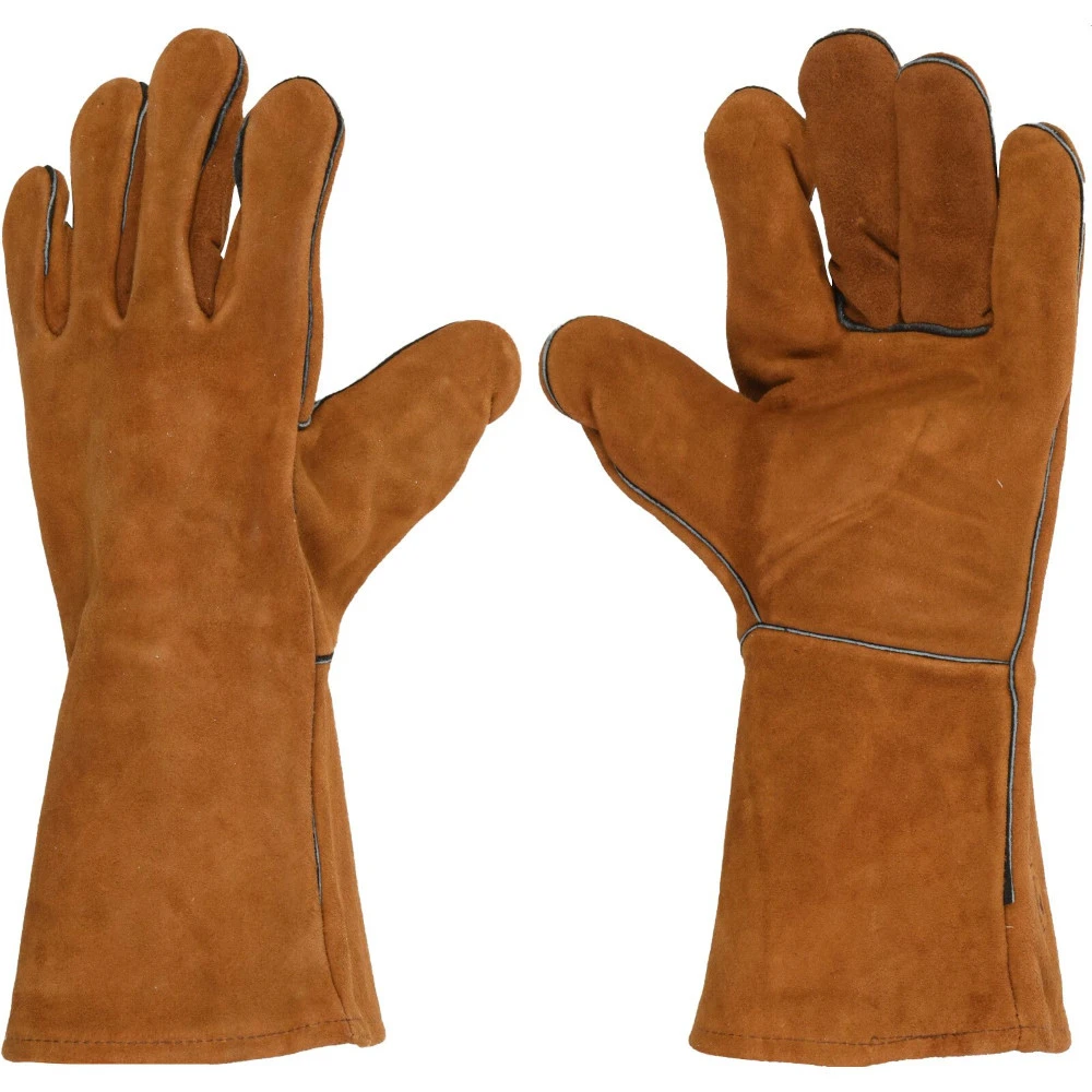 - 1 x Grillhandschuh aus Leder in Braun mit extra langem Schaft
