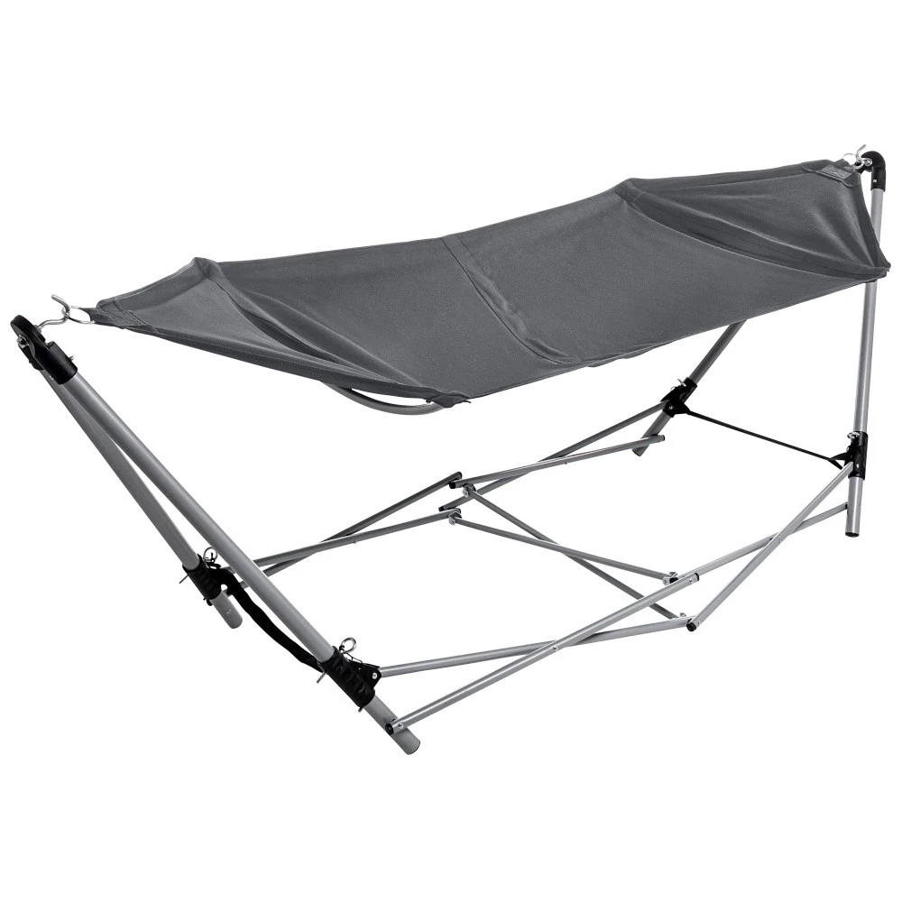 Hängematte faltbar 245 x 80 x 70 cm in anthrazit mit Metallgestell und Tragetasche
