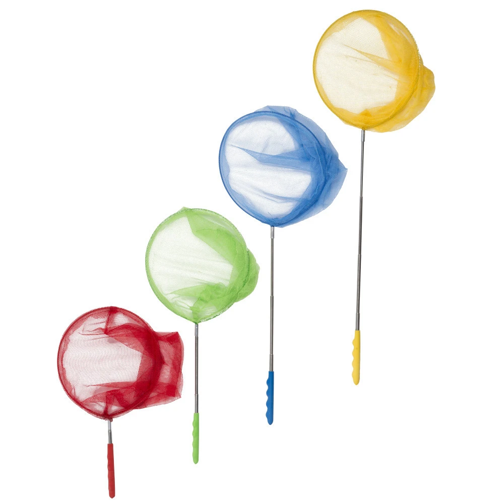 Kescher mit Alu-Teleskopstab und PVC-Netz in verschiedenen Farben