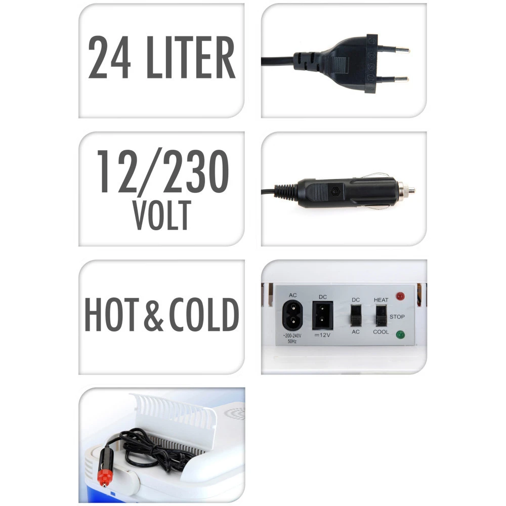 - 1 x Kühl- und Heizbox elektrisch mit 24 Liter Füllmenge in blau aus Kunststoff