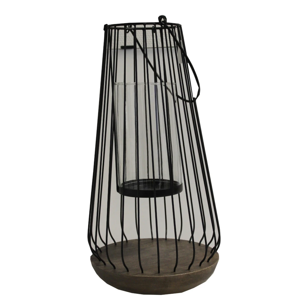 Diese Laterne mit Glaseinsatz und Teelichthalter ist ideal zum Dekorieren im Garten, Wohnung oder Terrasse. Sie wurde aus Eisen gefertigt und besitzt einen Sockel aus Mangoholz. Somit erschaffst du bei Veranstaltungen eine gemütliche Atmosphäre. Dank des stabilen Henkels ist es möglich, die Laterne aufzuhängen oder zu stellen.