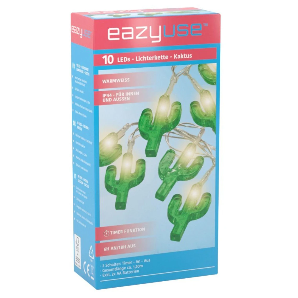 - 1 x LED-Lichterkette 120 cm mit Kaktusmotiv, 10 LEDs und Timerfunktion