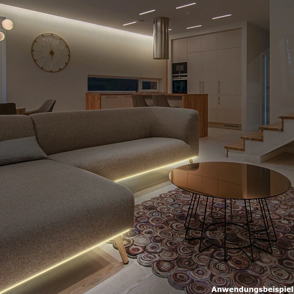 Das warmweiße, 3 m lange LED-Band sorgt für eine gemütliche, helle und gleichmäßige Beleuchtung. Dank des Bewegungssensors schaltet sich das Licht automatisch ein, sobald man vorbeigeht. Durch den Abstrahlwinkel von 120° deckt die Lichtleiste eine besonders große Fläche ab und kann daher auch kleinere Räume optimal beleuchten. Die 90 integrierten LEDs vom Typ 2835 schaffen eine stimmungsvolle Atmosphäre und vermitteln ein Gefühl von Wärme in den Räumlichkeiten. Die Lichtleiste benötigt eine Spannung von 5 V und funktioniert kabellos. Zur Stromversorgung werden 4x AAA-Batterien benötigt, welche nicht im Lieferumfang enthalten sind. Mit dem integrierten Steuerelement können 2 verschiedene Funktionen gewählt werden. Im ersten Modus wird das Licht automatisch über den Bewegungssensor eingeschaltet und bleibt 20 Sekunden lang aktiviert. Im zweiten Modus wird die Beleuchtung manuell eingeschalten und bleibt dauerhaft in Betrieb. Die LED-Lichterkette kann flexibel eingesetzt werden. So zum Beispiel als Hintergrundbeleuchtung an der Wohnzimmerwand, der Vitrine, als Schaufensterdekoration oder zur Dekoration der eigenen Lieblingspartys. Weitere Einsatzorte sind Bäder, Wohn- und Schlafzimmer, sowie Flure und Treppenhäuser. Der Streifen kann zudem gebogen werden und lässt sich somit sauber um die Ecke legen.
