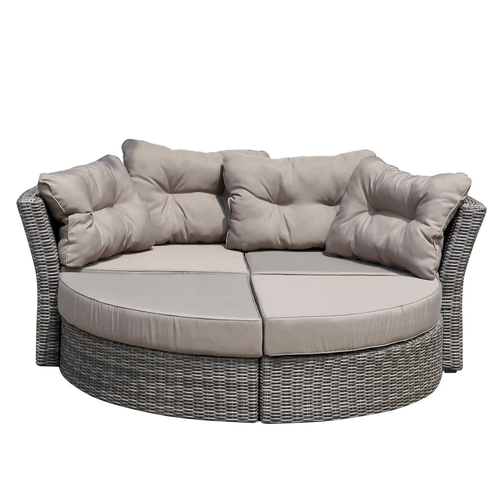 Liegeinsel Marbella 200x184x74cm Polyrattan grau Klappverdeck inkl. Auflagen