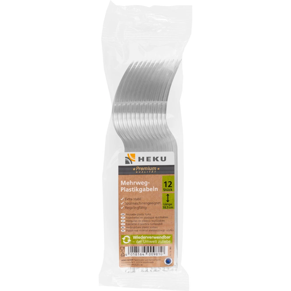 Diese Mehrweggabel aus Kunststoff überzeugen durch Klarheit und beste Qualität. Das Material ist extra stabil und robust. Die Gabeln sind bestens geeignet für jegliche Art von Partys, Festen oder anderen Feierlichkeiten.