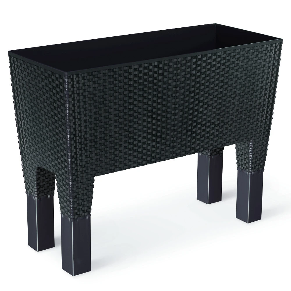 Der Blumenkasten Rato Case High aus robustem Kunststoff in anthrazit ist mit seiner eleganten Rattan-Optik ein echter Blickfang in der Wohnung, Balkon oder Terrasse. Mit dem dazugehörigen Bewässerungssystem und der Wasserstandanzeige ist eine gleichmäßige und langanhaltende Wasserversorgung der Pflanzen möglich. Durch die vier ansteckbaren Füße erhält der Pflanzkasten zusätzliche Stabilität.