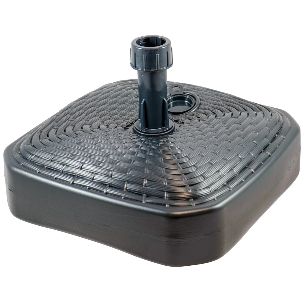 Der Sonnenschirmständer aus wetterbeständigem Kunststoff in anthrazit ist ideal für große Sonnenschirme, Marktschirme und Ampelschirme. Sein Träger kann Sonnenschirm Rohre mit einem maximalen Durchmesser von 26 mm aufnehmen. Der Schirmständer hat ein Fassungsvermögen von ca. 12 Liter und kann für den notwendigen Halt mit Wasser, Kies oder Sand befüllt werden.