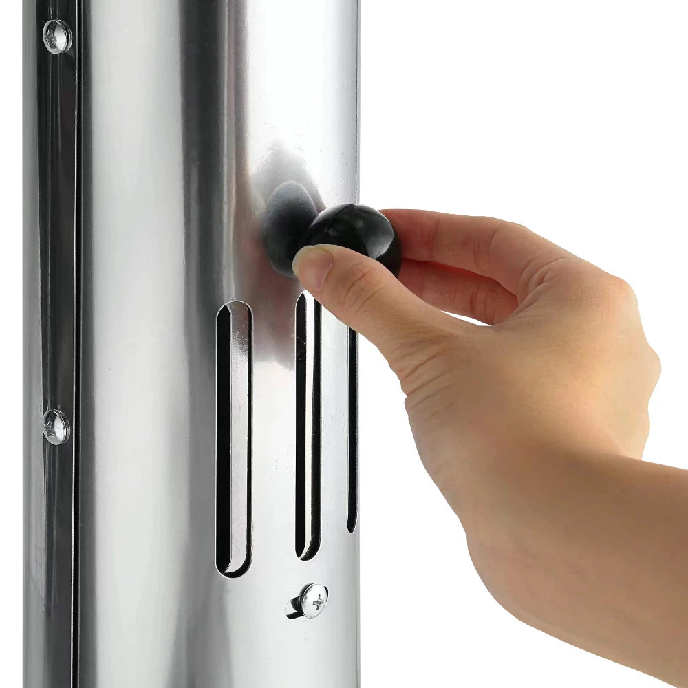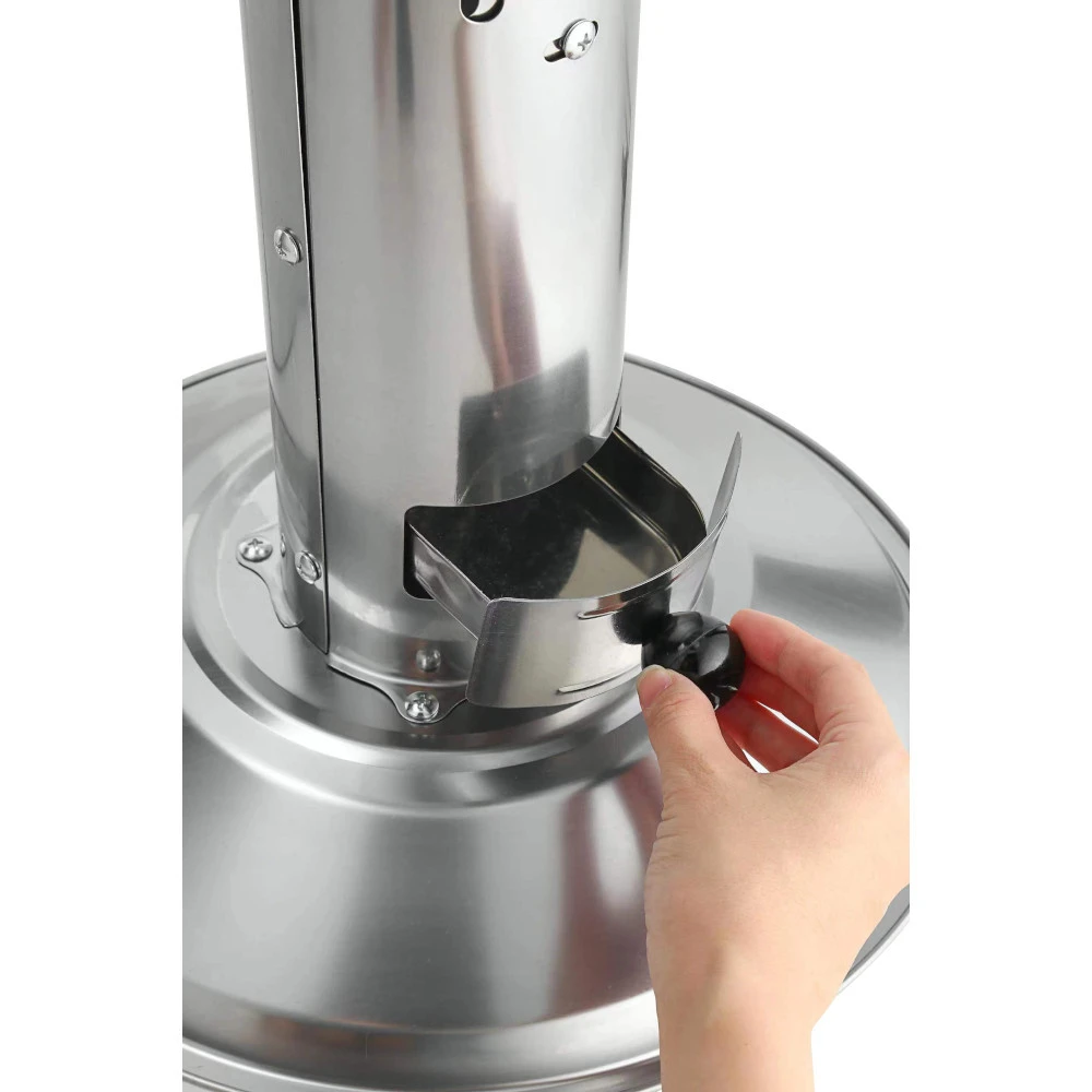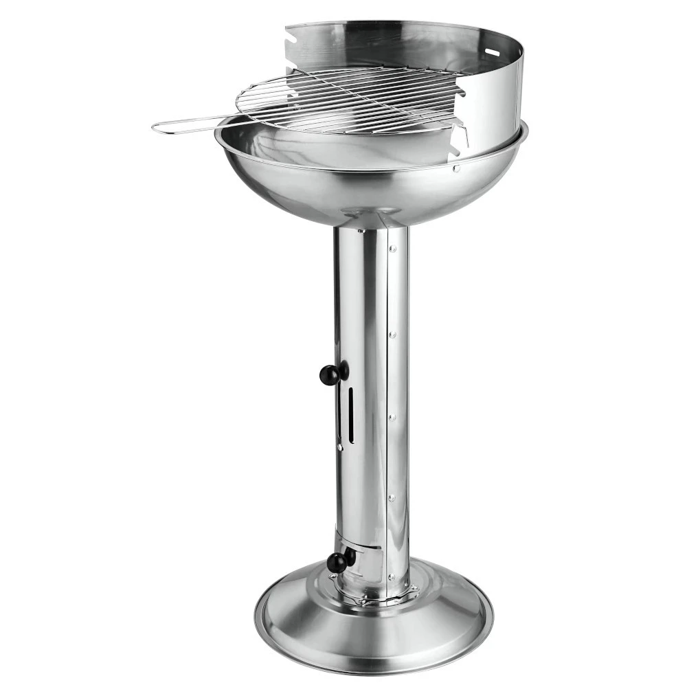 Der runde Säulengrill in Edelstahlausführung mit Trichterform ist ideal für Veranstaltungen, Gartenpartys oder Geburtstagsfeiern. Das verchromte Grillrost bietet ausreichend Platz für Grillvariationen und lässt sich in der Höhe 3-fach verstellen. Durch den Kaminzugeffekt mit verstellbarem Luftschieber ist es möglich, die Luftzufuhr nach Belieben zu regulieren. Somit erhältlich die Kohle mehr Sauerstoff und die Glut kann schneller verglühen. Die Auffangschale für die Asche sammelt die Rückstände während des Grillens und macht die Reinigung danach kinderleicht.