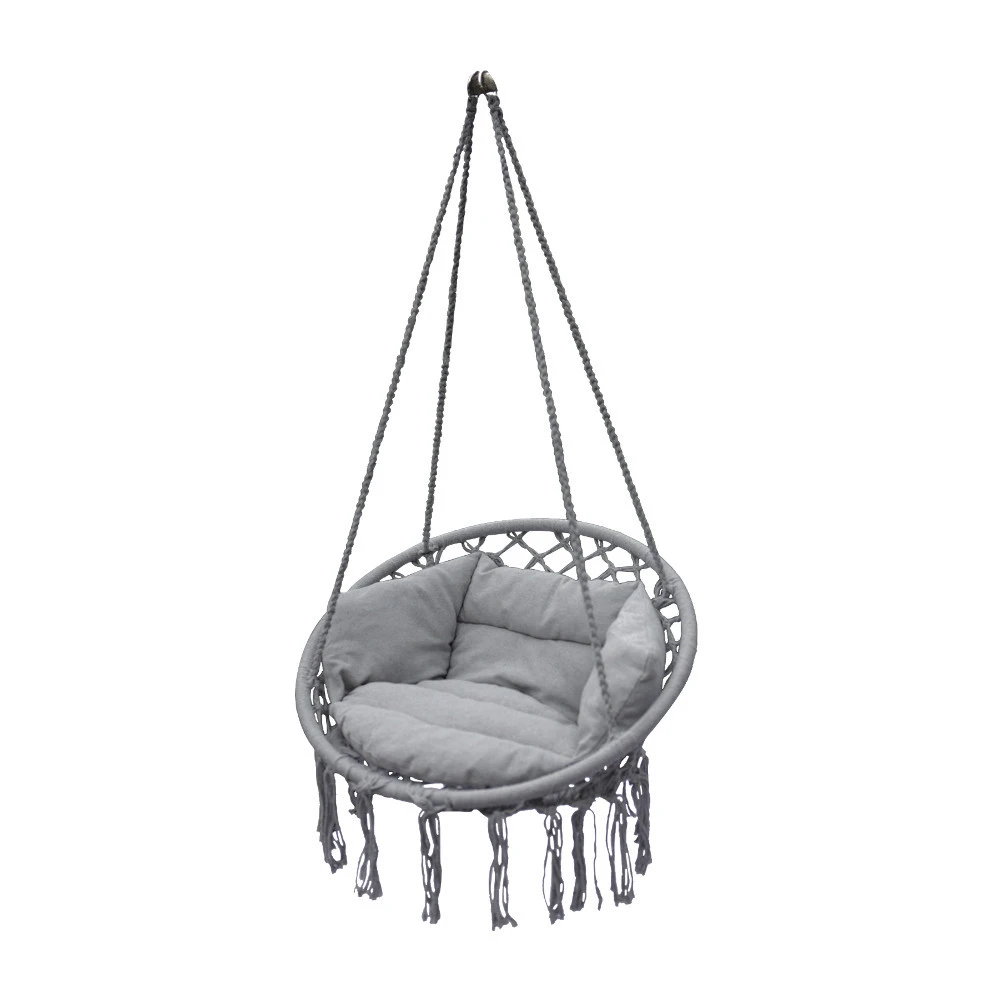 Schaukel-Hängesessel in Hellgrau im Makramee-Design inklusive Befestigungsringe