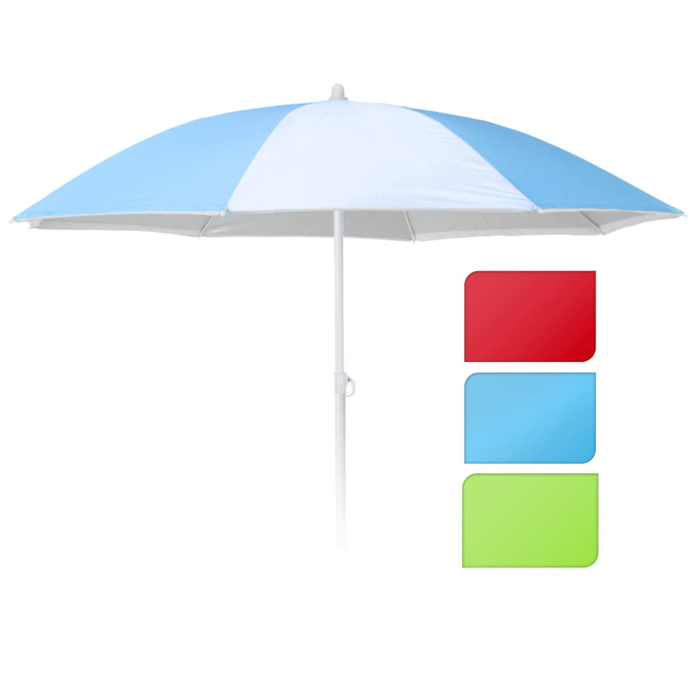 Der praktische Sonnenschirm 2in1 sorgt ob am Strand oder Balkon für ein geschütztes und schattiges Plätzchen. Erhältlich ist der Schirm in drei verschiedenen Farben. Durch seine zwei Seitenteile kann der Schirm auch als Strandmuschel genutzt werden. Die angenähten Seitenwände können problemlos hochgeklappt werden. Der Strandschirm hat ein robustes, höhenverstellbares Standrohr mit Kunststoffspitze. Er kann sowohl in einem Schirmständer als auch einfach in den Boden gesteckt werden.