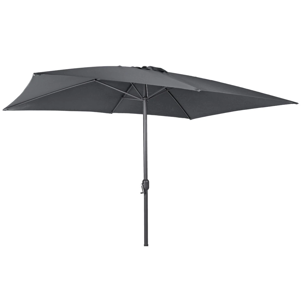Dieser rechteckig Sonnenschirm sorgt für ein geschütztes und schattiges Plätzchen. Der praktische und einfach zu bedienende Kurbelmechanismus ermöglicht ein schnelles Öffnen und Schließen. Der Sonnenschirm hat einen Bezug aus Polyester und ein pulverbeschichtetes Gestänge. Der Kurbelschirm hält auch leichte Schauer ab, sollte aber bei Bedarf entsprechend imprägniert werden.