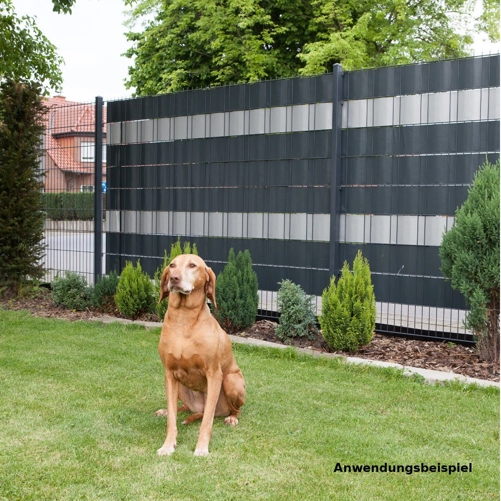 Das Produkt ist 190 mm hoch und passt somit optimal zu fast allen Stahlzäunen mit einer Maschenhöhe von ca. 200 mm. Selbstverständlich ist das verwendete Material witterungs- und UV-beständig, extrem reißfest und zudem sehr gut zu verarbeiten. Es reflektiert das Licht kaum und blendet auch bei direkter Sonneneinstrahlung nicht.