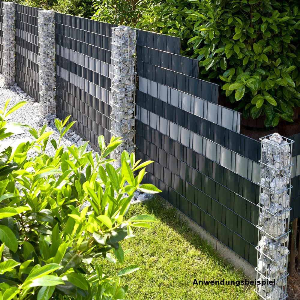 Bei Verschmutzung kannst du den Sichtschutz schnell und einfach abwaschen. Es stehen verschiedene Flechtarten zur Verfügung, die du je nach Geschmack frei wählen und immer wieder vielfältig verändern kannst. Nachdem die Streifen eingeflochten sind, befestigst du sie mit den mitgelieferten Klemmschienen. Die 35 m Rolle reicht für ca. 7 m². Hinweis zur Windbelastung: Bei der Installation des Sichtschutzes empfehlen wir, die möglichen Windverhältnisse zu berücksichtigen und sicherzustellen, dass die entsprechende Statik des Zauns erhalten bleibt.